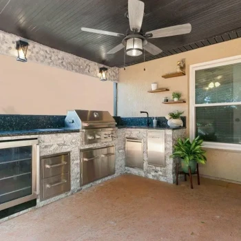 - Khu Bếp Ngoài Trời Hoàn Toàn Mới: Một không gian hoàn hảo cho tiệc BBQ với bếp nướng, tủ lạnh mini, bồn rửa, và mặt bàn đá granite ốp đá sang trọng.