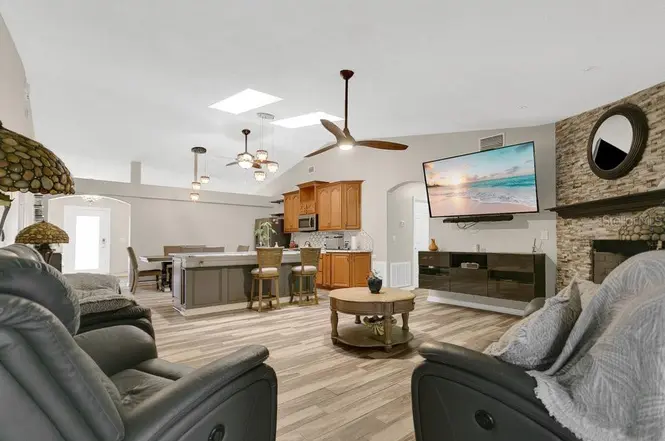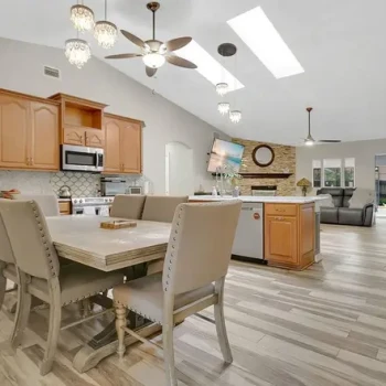 - Trần cao kiểu nhà thờ và ánh sáng tự nhiên dồi dào từ giếng trời và phòng Florida bao quanh bởi cửa kính trượt.
