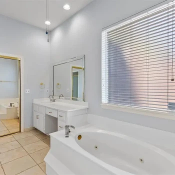 Phòng ngủ chính đáng yêu với cửa sổ lồi (bay windows), vòi sen riêng biệt, bồn tắm sục (jetted tub), bồn rửa riêng biệt, và tủ quần áo không cửa ngăn KHỔNG LỒ (HUGE WIC)! Phòng tiện ích lớn với không gian lưu trữ bổ sung và bồn rửa phụ! Sân sau thanh bình với sân hiên được che phủ một phần.