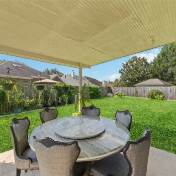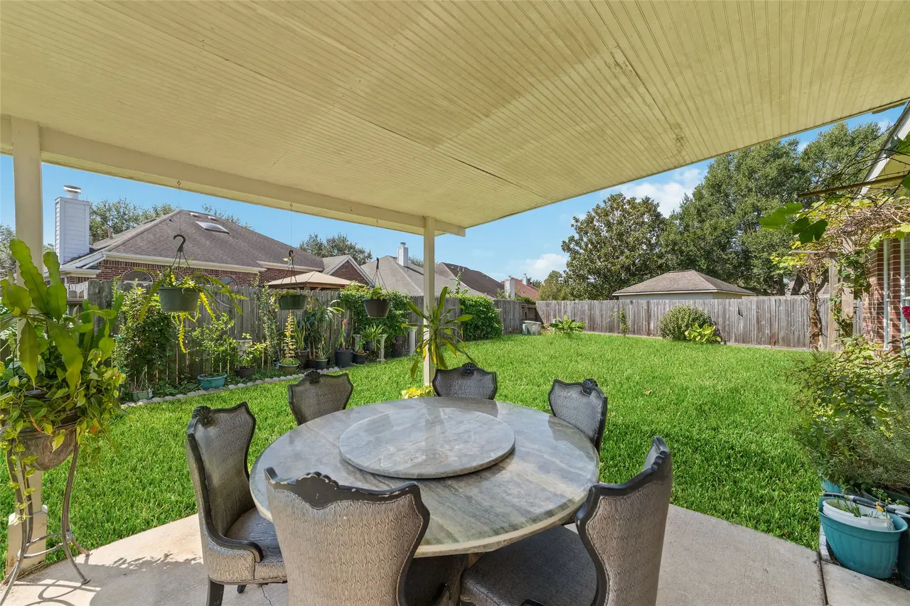 - Sân sau lớn với sân hiên có mái che (covered patio) lý tưởng cho hoạt động ngoài trời.