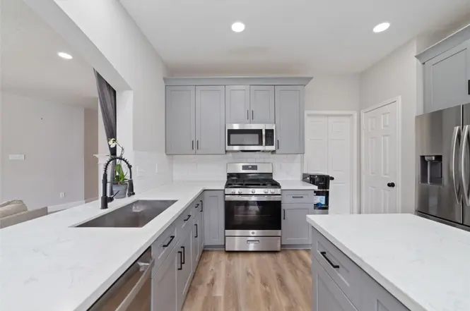 - Mặt bàn đá thạch anh (quartz counters).